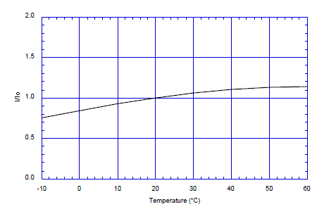 I = 傳感器在各種溫度下400ppm一氧化碳中的輸出電流