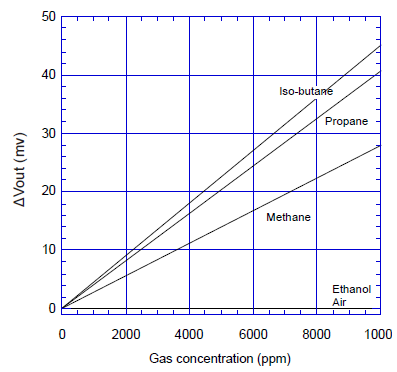 四、催化燃燒式可燃?xì)怏w傳感器TGS6810靈敏度特性: