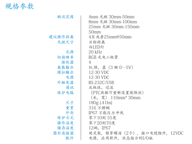 四、顏色傳感器ColorMax FLEX規(guī)格參數(shù)