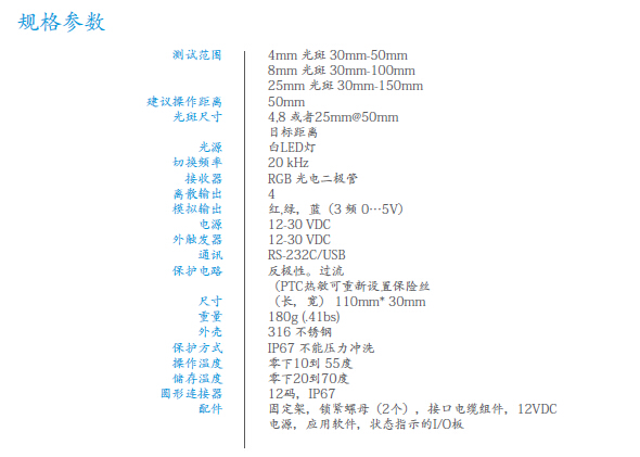 四、顏色傳感器 RGB規(guī)格參數(shù):