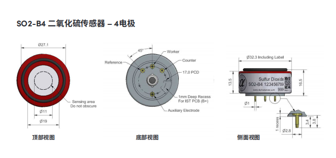 一、英國alphasense 二氧化硫傳感器(SO2傳感器)SO2-B4 SO2-B4+描述: