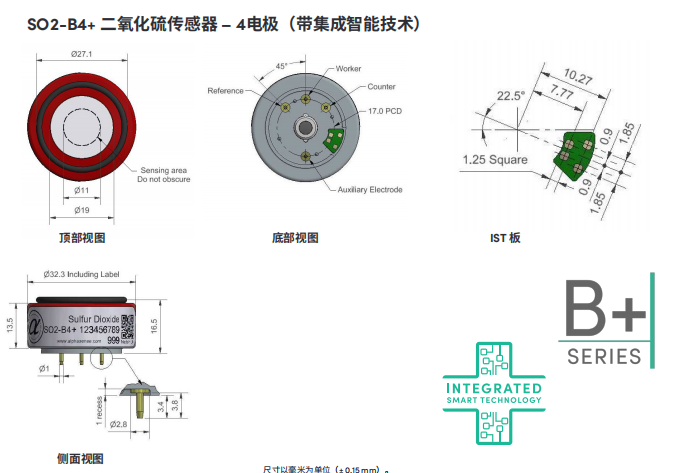 英國alphasense 二氧化硫傳感器(SO2傳感器)SO2-B4 SO2-B4+ IST板數(shù)據(jù):