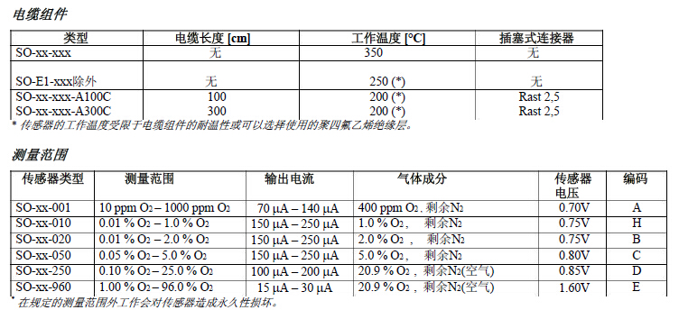 測(cè)量范圍:Type SO-E2-010     0,01 – 1,0 vol.% O2