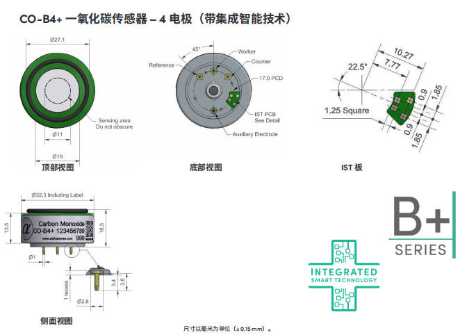 CO-B4 傳感器是一種 PPB傳感器,旨在用于環(huán)境空氣質量應用,具有很佳的基線穩(wěn)定性。該產品有我們的標準格式CO-B4?和具有我們專利的集成智能技術(CO-B4+),后者在傳感器中集成了帶有存儲芯片和溫度傳感器的 IST 板。