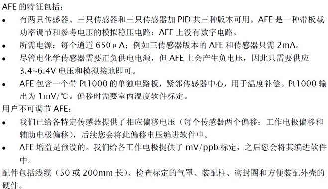 二、模擬前端電路(AFE) A4系列空氣質(zhì)量傳感器特征