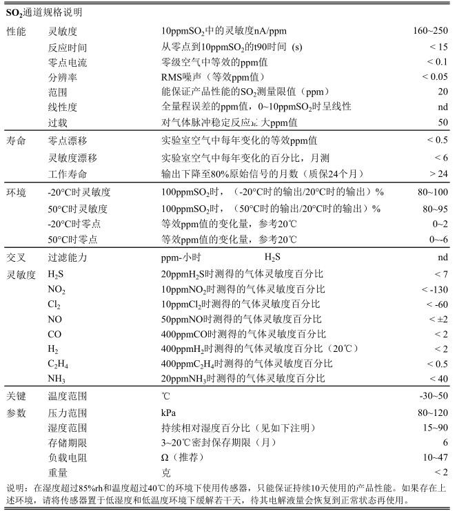 二、SOH-A2 型傳感器的二氧化硫通道的技術(shù)指標: