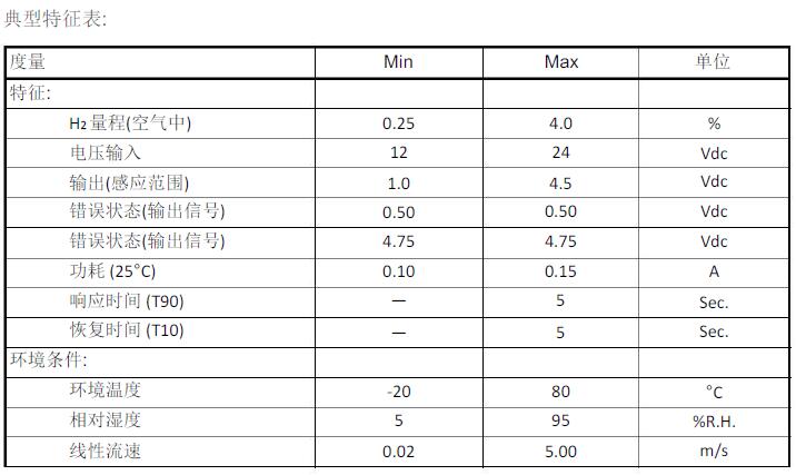 1.0 ~ 4.5V 輸出,程0.25~4.0% H2 空氣中(5~ 100% LFL)