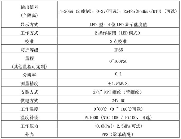 工業(yè)在線鹽度計(jì)DDM200Y技術(shù)參數(shù)