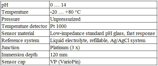 三、SE 560 Memosens pH傳感器技術參數(shù)