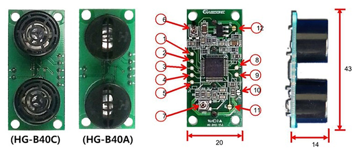 韓國Hagisonic 超聲波傳感器模塊 HG-B40C 端子和零件描述: