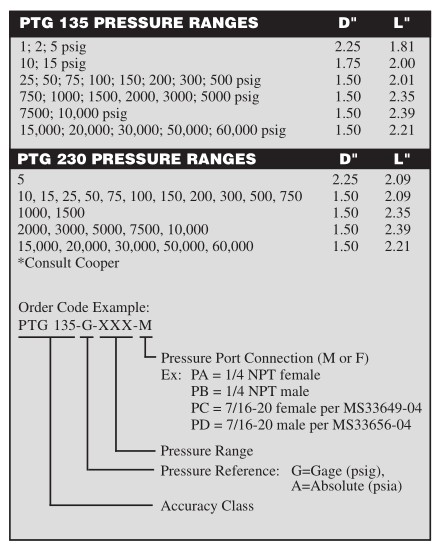 Cooper Instruments 壓力傳感器 - PTG135