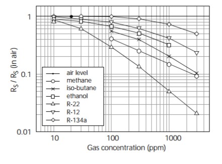 --傳感器阻值變化率:在含有1000ppm~3000ppm的R22空氣中