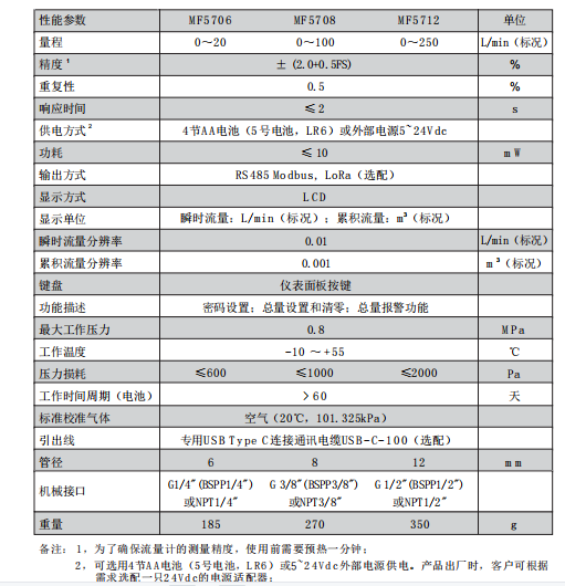 四:美國Siargo MF5700系列便攜式氣體質(zhì)量流量計 參數(shù):