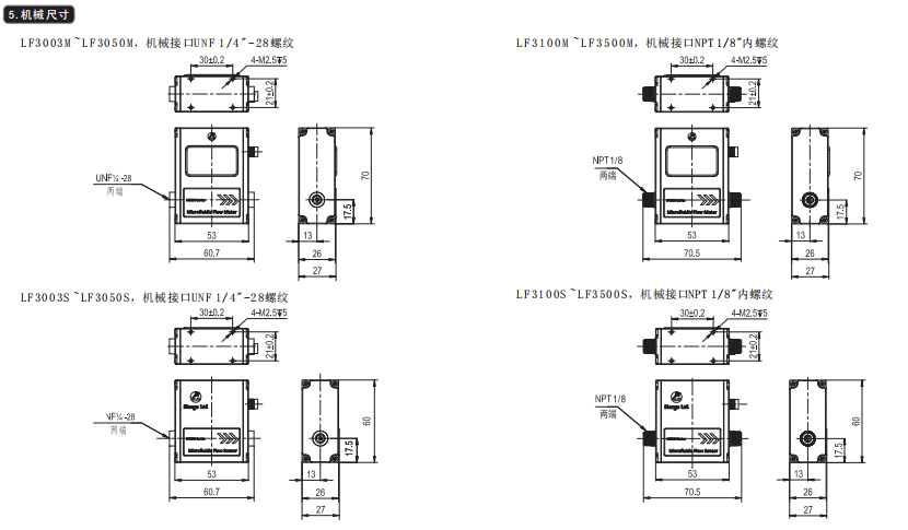 美國Siargo 微液體流量計(jì) LF3000系列 尺寸: