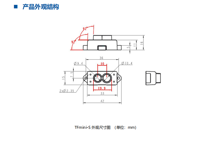 激光雷達(dá)模組 SJ-PM-TFmini-S A01 尺寸