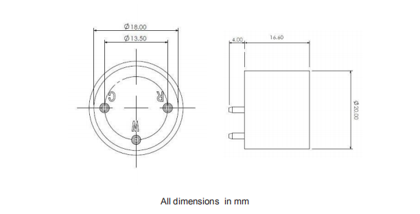 HCHO 甲醛傳感器(ES4-HCHO-5)外形結(jié)構(gòu)圖: