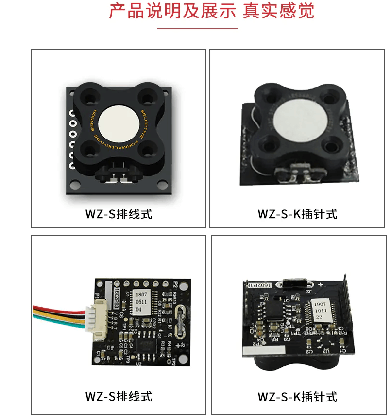 甲醛傳感器 甲醛檢測(cè)模組 WZ- S型 排線式和插針式的接線方式區(qū)別: