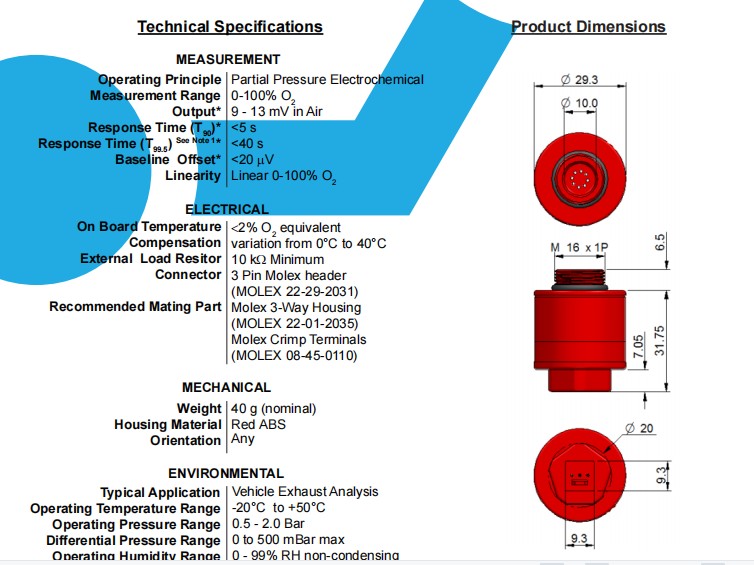 AO2 PTB-18.10使用于各類與氧氣測試相關(guān)的儀器中,如:機動車尾氣檢測儀器,廢氣環(huán)保檢測儀器,氧指數(shù)測試儀器。