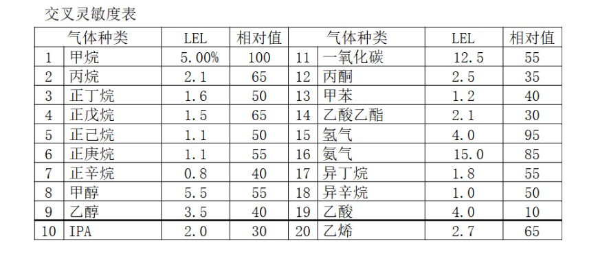 常溫下標(biāo)準(zhǔn)氣體濃度和潔凈空氣中的輸出值