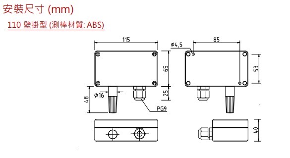 臺(tái)灣Seria 高濕度 溫濕度傳感器 CAEL-HH 尺寸: