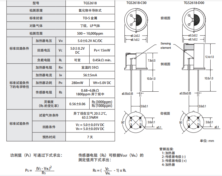TGS2618對(duì)丙烷與丁烷具有很高的靈敏度,是zui佳的LPG監(jiān)控器,由于其對(duì)揮發(fā)性的酒精(居住環(huán)境常見(jiàn)的干擾氣體)靈敏度很低,因而對(duì)于氣體泄漏報(bào)警器來(lái)說(shuō)是一種理想的傳感器。由于敏感素子體積很小,TGS2618的加熱器電流僅需56mA,傳感器的檢知部被收納于標(biāo)準(zhǔn)的TO-5金屬封裝中。