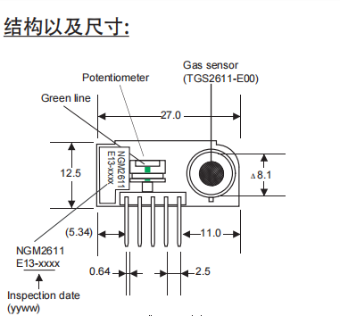 插口式連接可以更方便地周期性更換傳感器。此輸入/輸出插口讓模塊與主板連接時更為簡便,只要很簡單地更換一下模塊,此主板就可以用于甲烷或LP兩種氣體的檢測器。此模塊的設(shè)計滿足EN50194與UL1484的性能要求。關(guān)于傳感器的靈敏度特性請參見“Technical Information for TGS2611”,有關(guān)電路設(shè)計進(jìn)一步的信息請參見“Application Notes for TGS2611”。