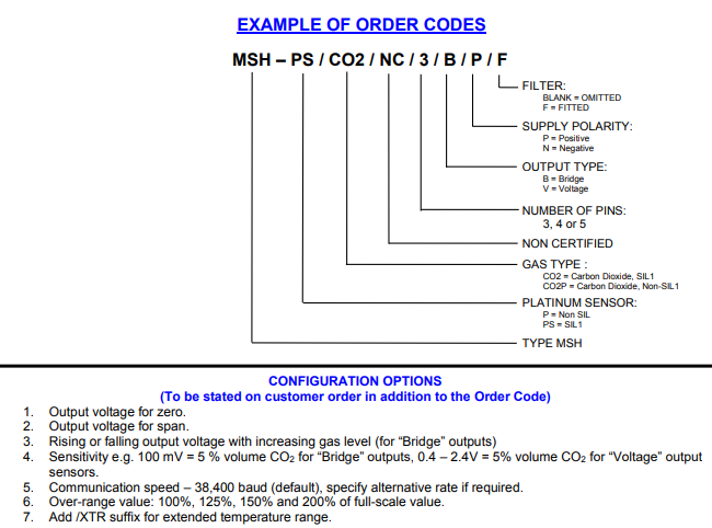 Dynament 二氧化碳傳感器 CO2傳感器 MSH-P/CO2 選型: