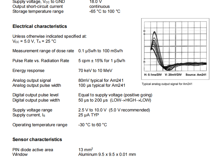 瑞士Teviso 輻射傳感器 檢測(cè)α β粒子 γ射線 AL54 參數(shù):