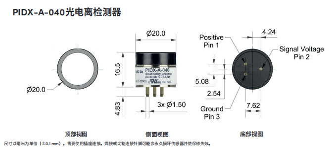 英國Alphasense VOC 光電離子傳感器 高級PID傳感器 – PIDX-A-040 尺寸: