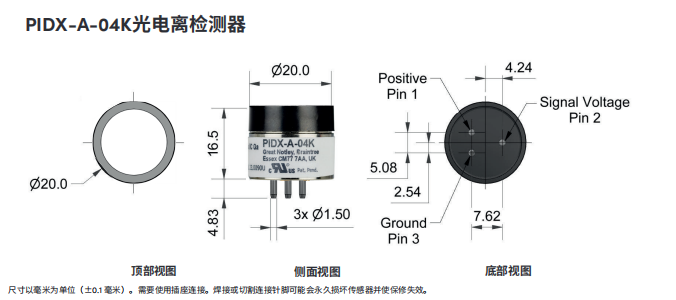 英國(guó)Alphasense VOC 光電離子傳感器 高級(jí)PID傳感器 – PIDX-A-04K 尺寸: