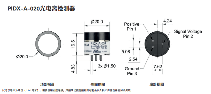 英國Alphasense VOC 光電離子傳感器 高級(jí)PID傳感器 – PIDX-A-020 尺寸: