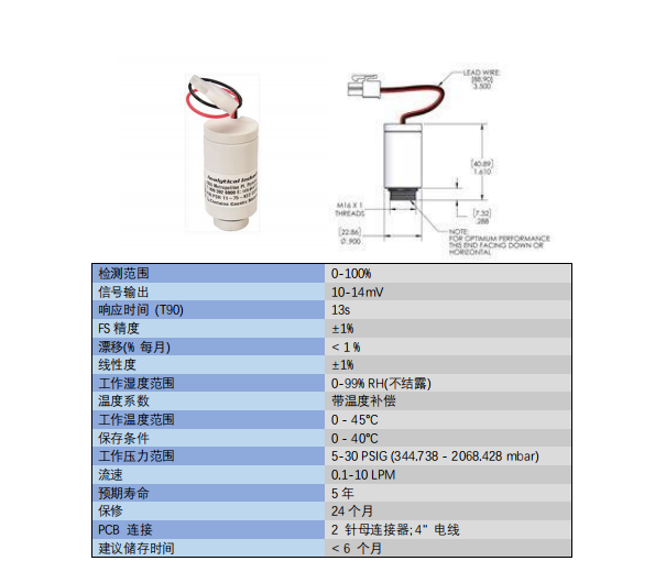 美國AII O2 氧氣傳感器?PSR-11-75-KE2 參數(shù):