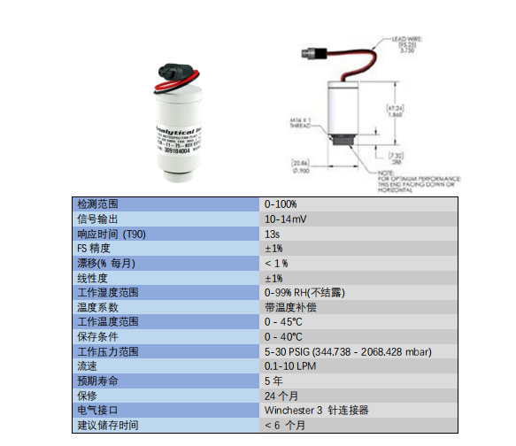 美國AII O2 氧氣傳感器 PSR-11-75-KE8 參數(shù):