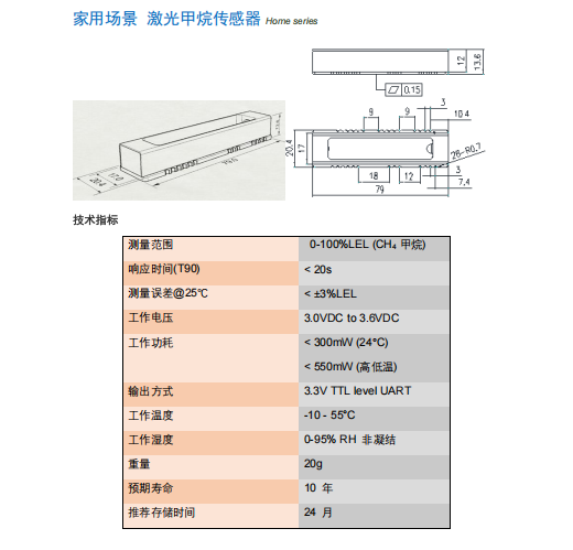 激光甲烷傳感器 AG-6-CH4-H8012-L 參數(shù):