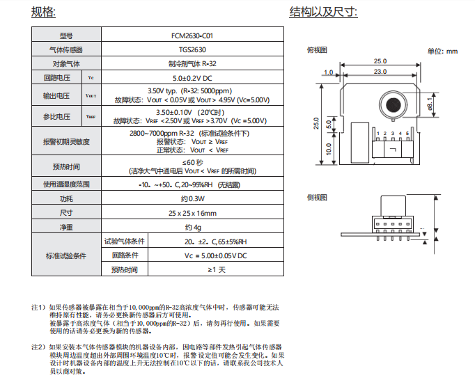 日本Figaro 用于制冷劑氣體R-32 的預(yù)校準(zhǔn)模塊 FCM2630-C01 參數(shù):