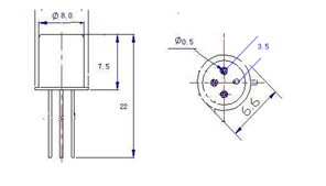 四、氫氣傳感器(H2傳感器)MQ-D8型外形結(jié)構(gòu):