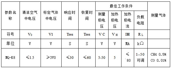 三、一氧化碳可燃?xì)怏w傳感器(CO/CH4傳感器)MQ-D9規(guī)格型號: