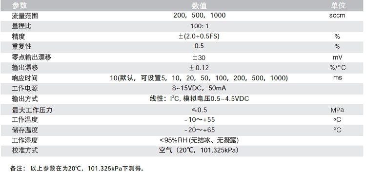 四、FS5001L氣體流量傳感器技術參數(shù)