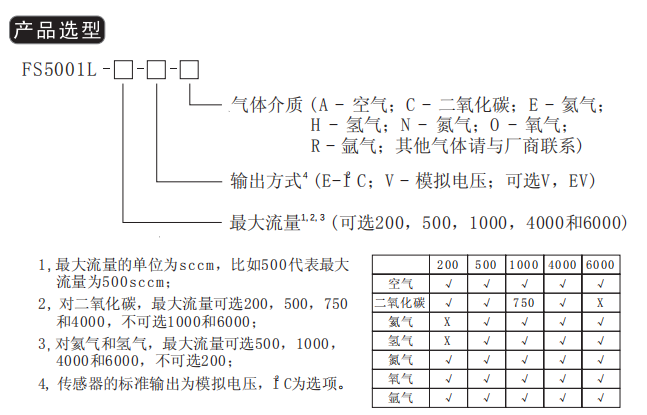 五、FS5001L氣體流量傳感器產(chǎn)品選型